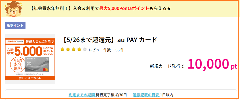 ここ数年で1万円超えのクレカ案件が増えていますね。